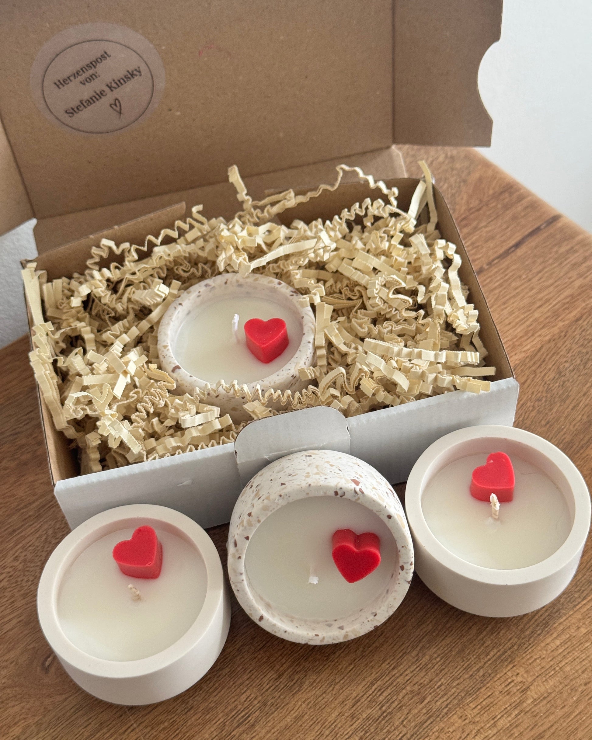 Eine kleine Freude, die Licht und Ruhe schenkt und beim Auspacken ein Gefühl von Nähe hinterlässt. Die beschenkte Person kann das kleine Herz zum Schmelzen bringen.